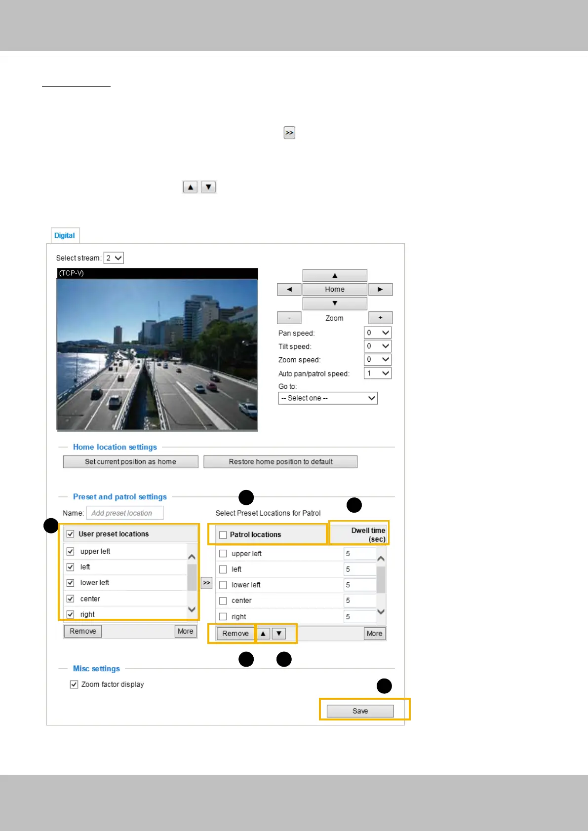 3. Set the Dwelling time for the preset location during an auto patrol.