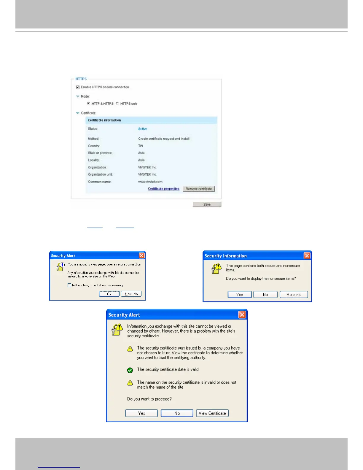 curity Alert dialogs will pop up. Click OK or Yes to enable HTTPS.