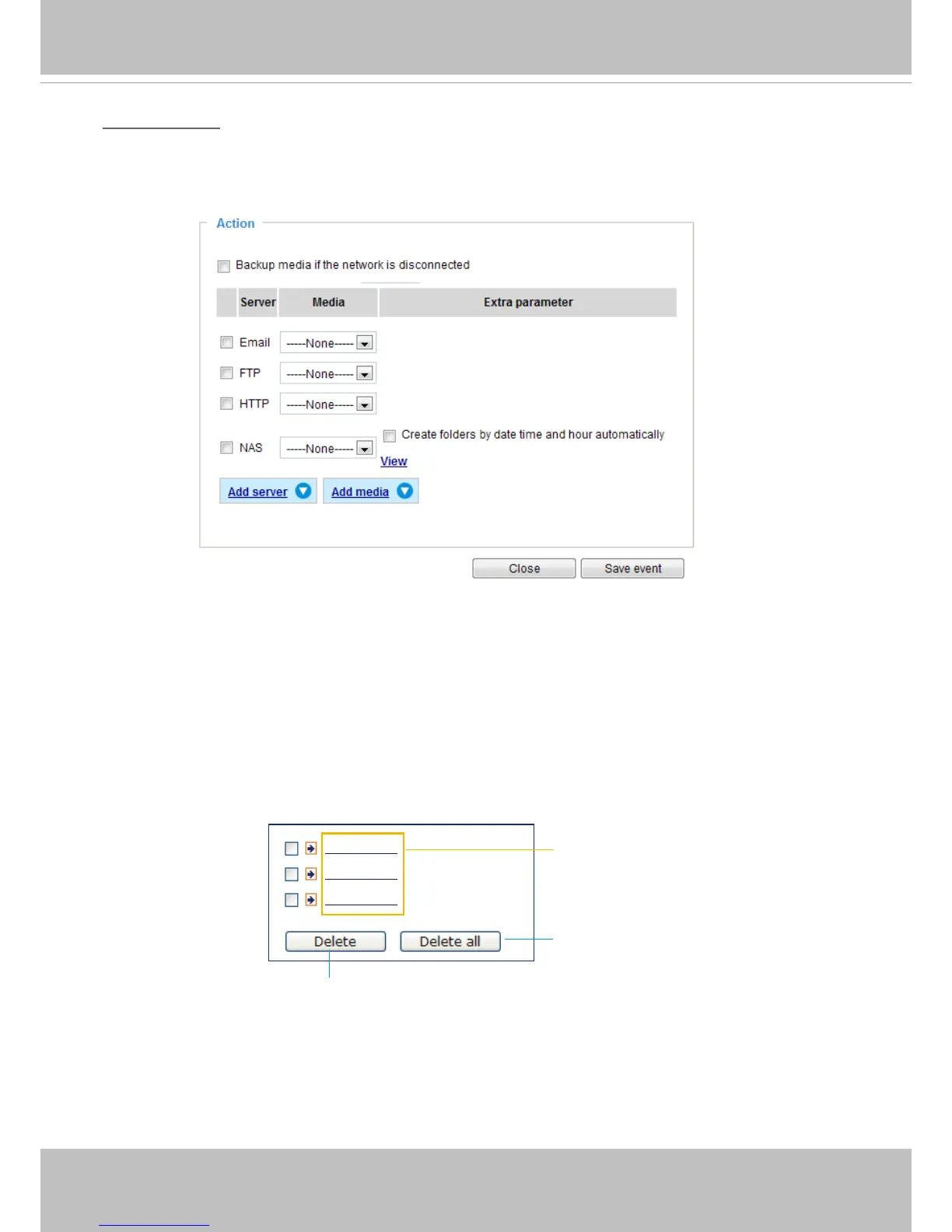 Select to send the media les to a networked storage when a trigger is activated. Please refer to NAS