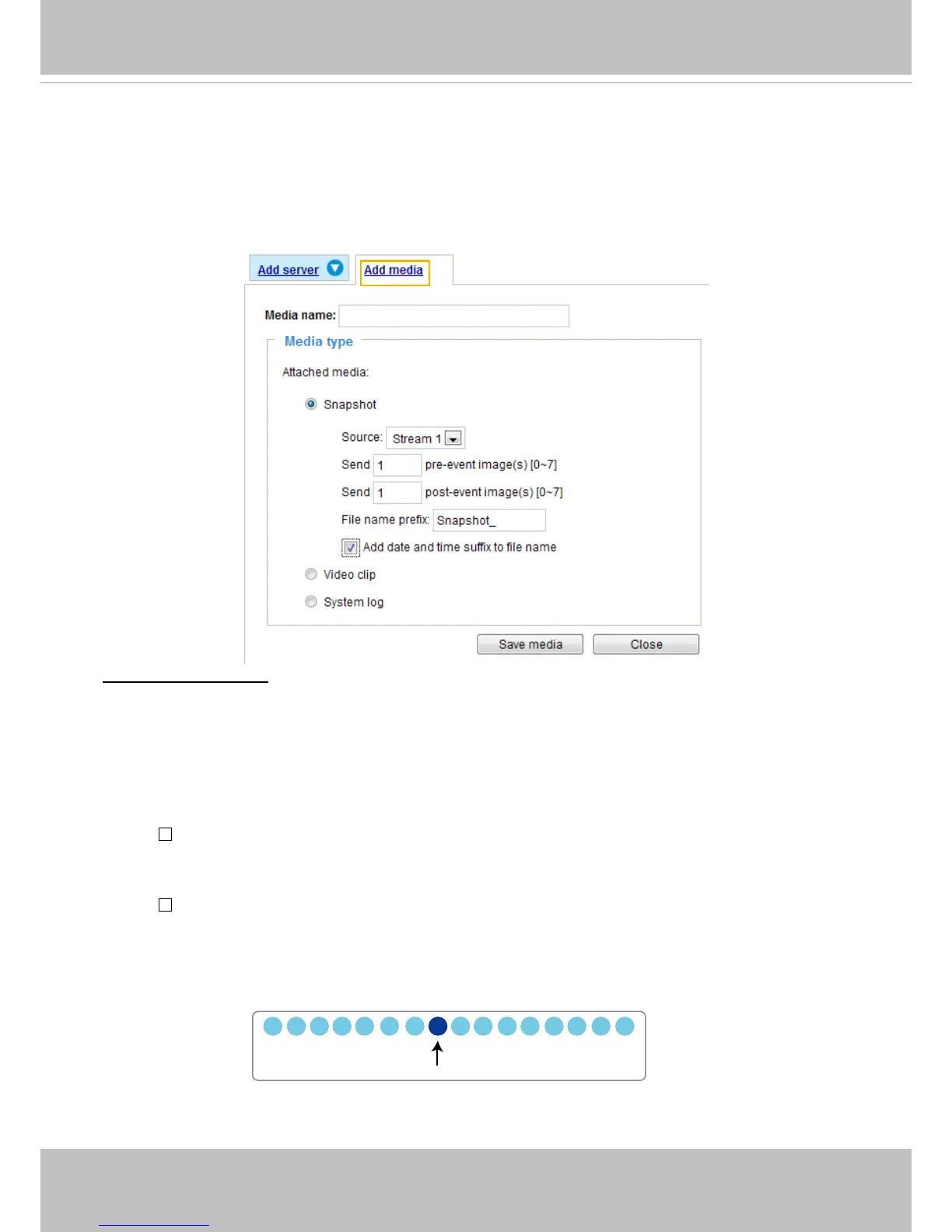 of media types available: Snapshot, Video Clip, and System log.