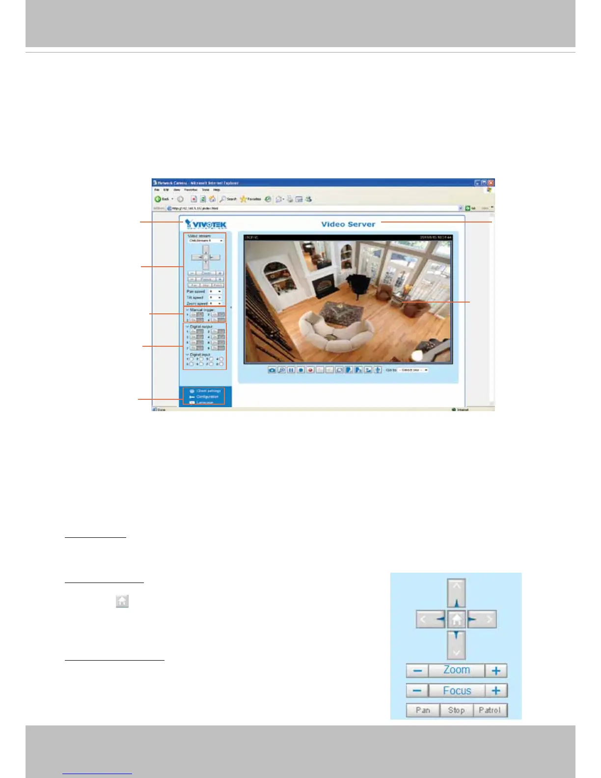 VIVOTEK INC. Logo, Host Name, Camera Control Area, Configuration Area, Menu, and