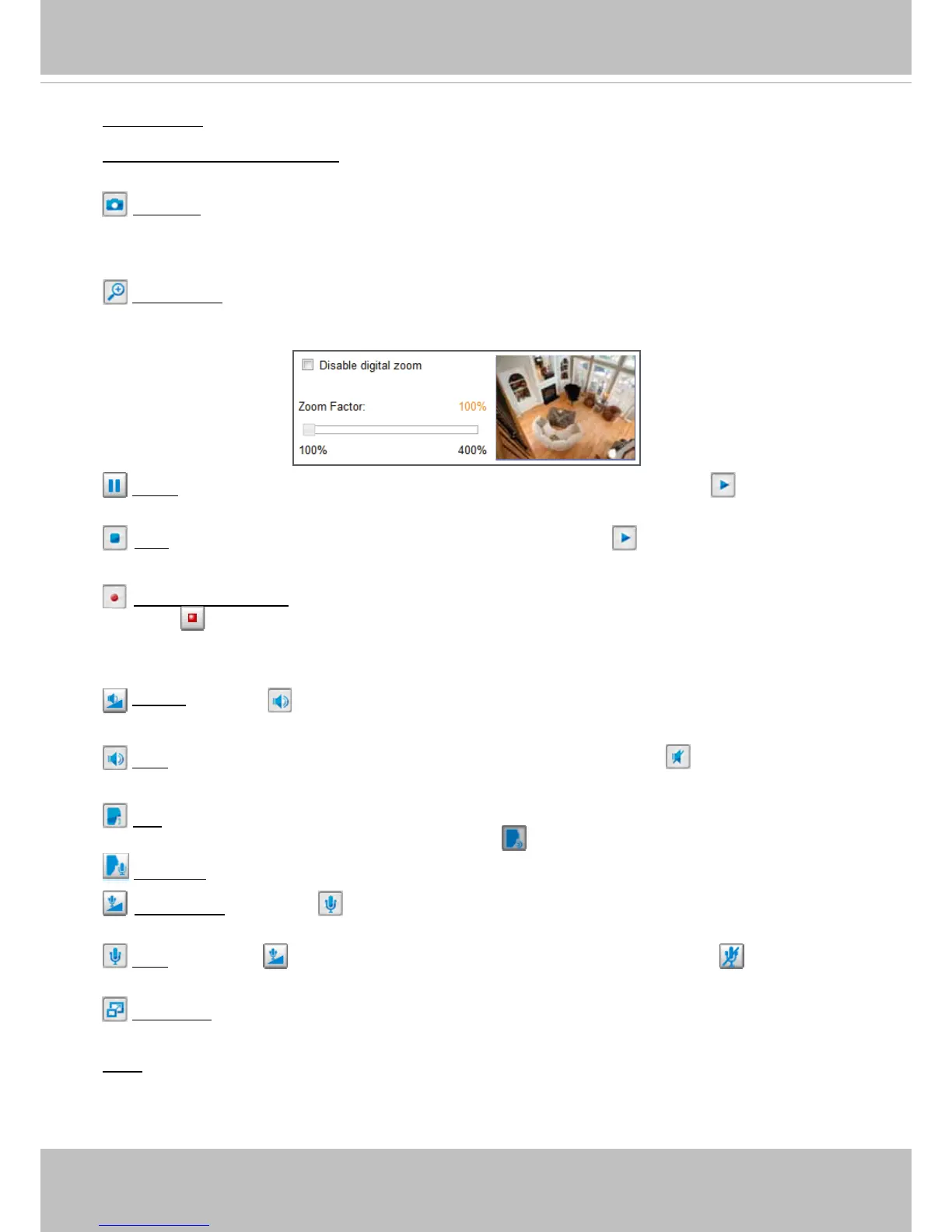 Pause: Pause the transmission of the streaming media. The button becomes the Resume button