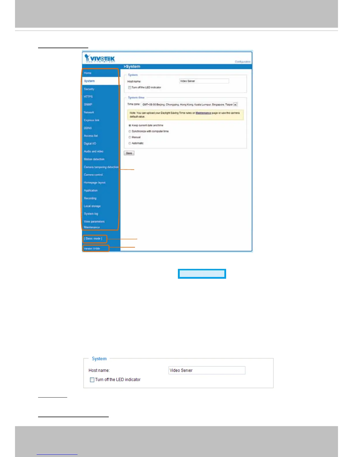 Host name: Enter a desired name for the video server. The text will be displayed at the top of the main