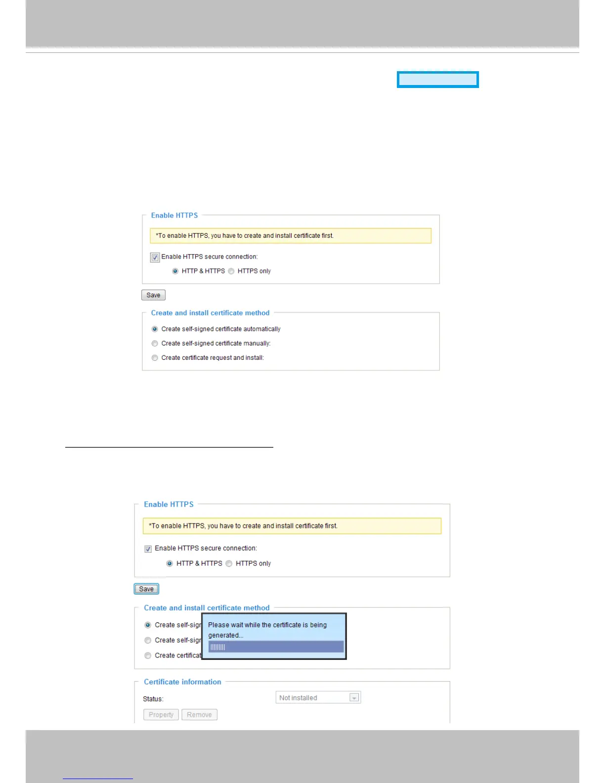 Before using HTTPS for communication with the video server, a Certicate must be created rst. There