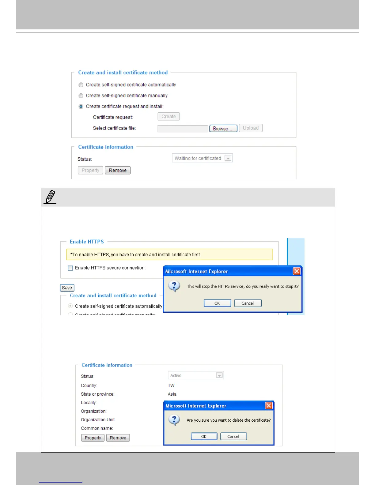 ► If you want to create and install other certificates, please remove the existing one. To remove the