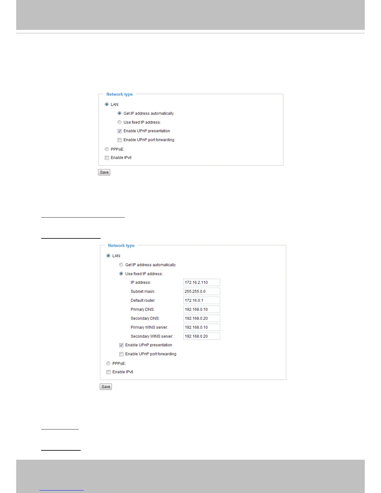accessed by local computers. The default setting for the Network Type is LAN. Rememer to click Save