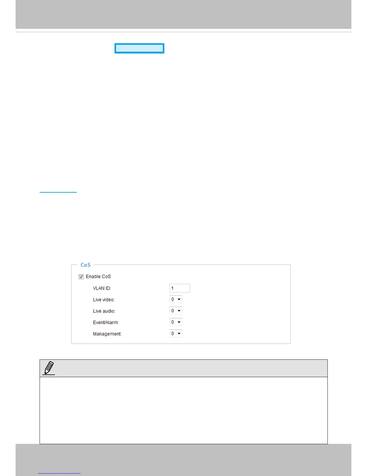 Below is the setting column for CoS. Enter the VLAN ID of your switch (0~4095) and choose the priority