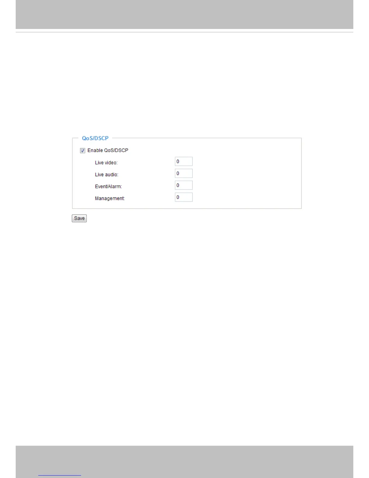 Below are the setting options of DSCP (DiffServ Codepoint). Specify the DSCP value for each application