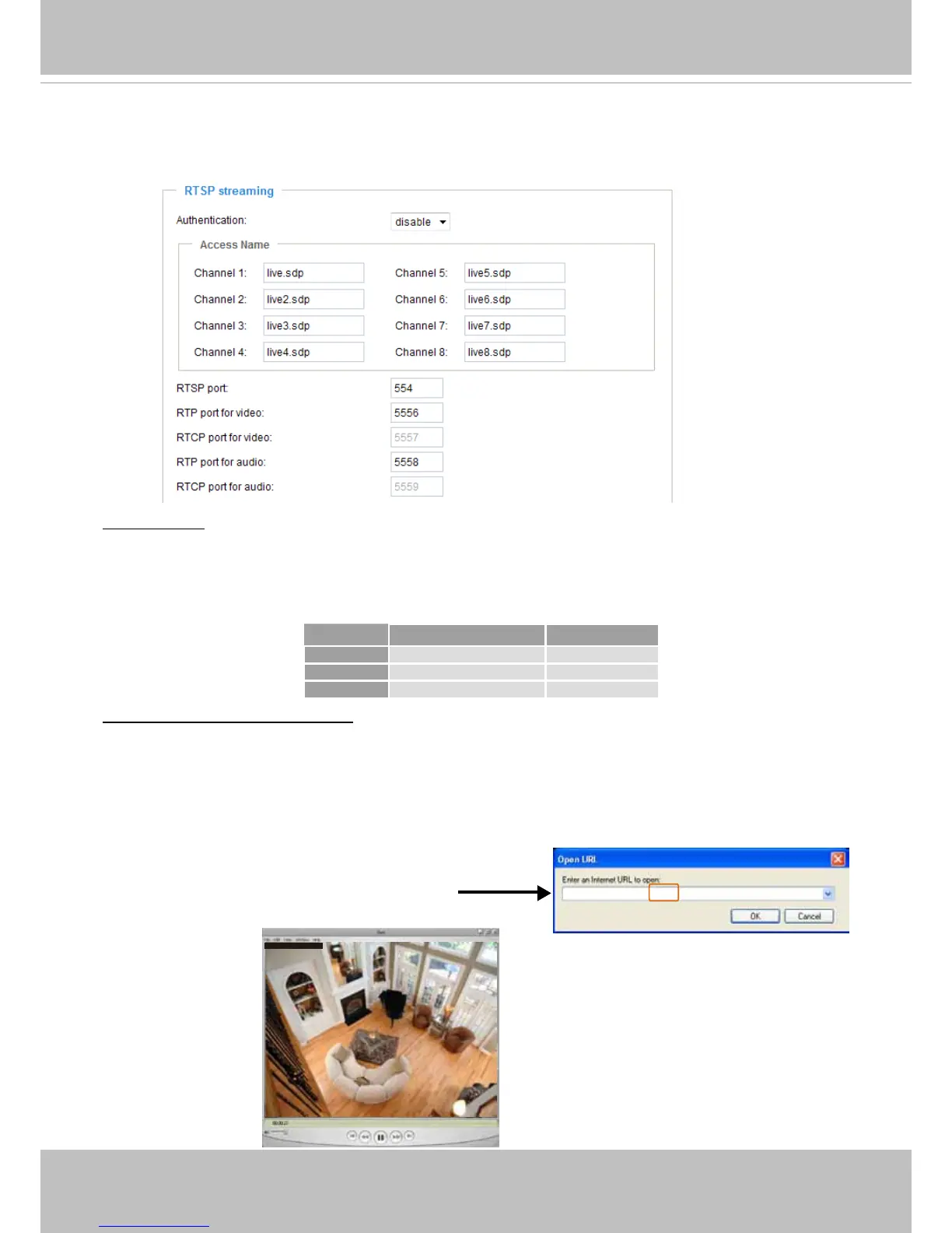 For example, when the access name for stream 1 is set to live.sdp:
