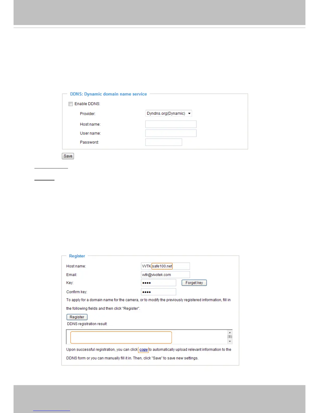 VIVOTEK offers Safe100.net, a free dynamic domain name service, to VIVOTEK customers. It is