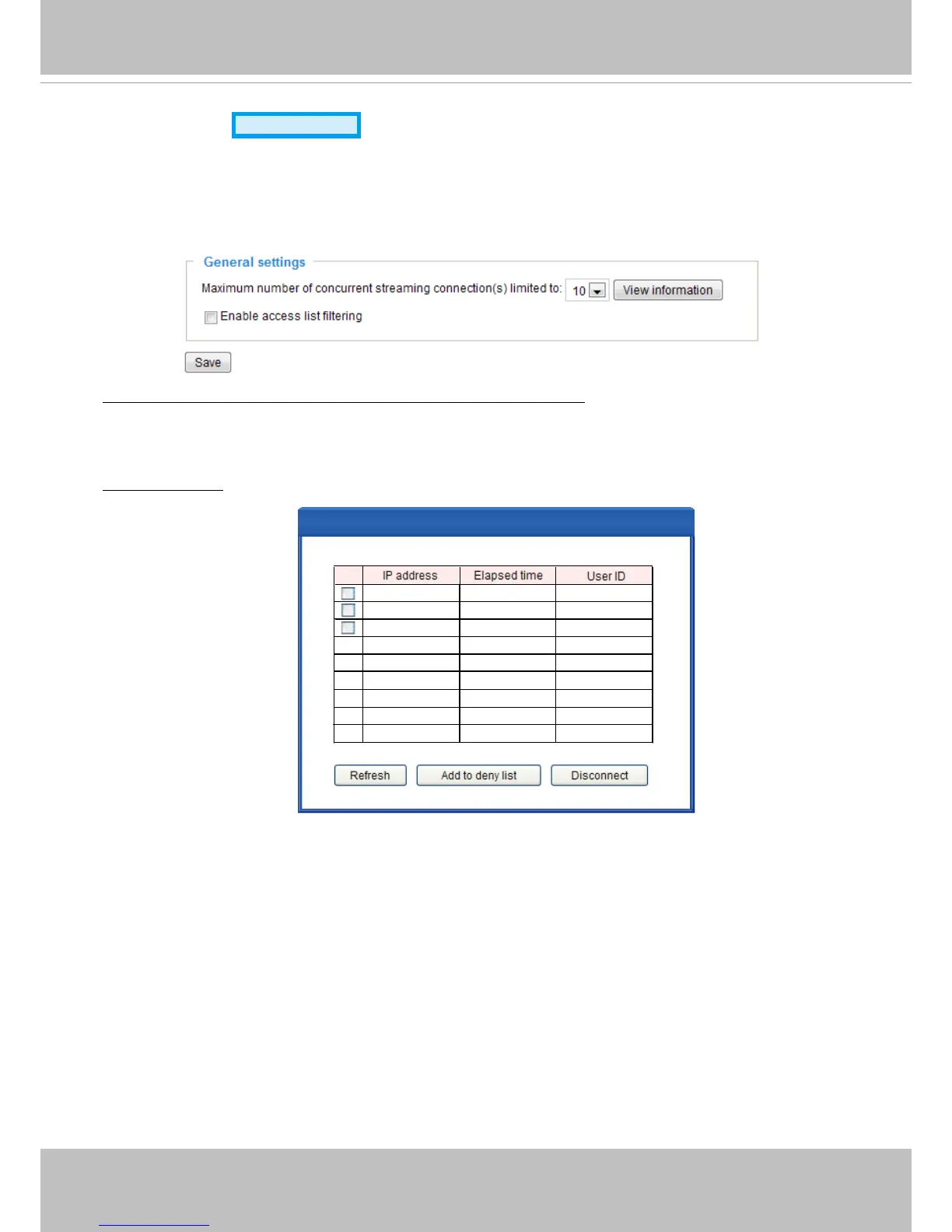 and password to access the live video. The user name will be displayed in the User ID column. If the