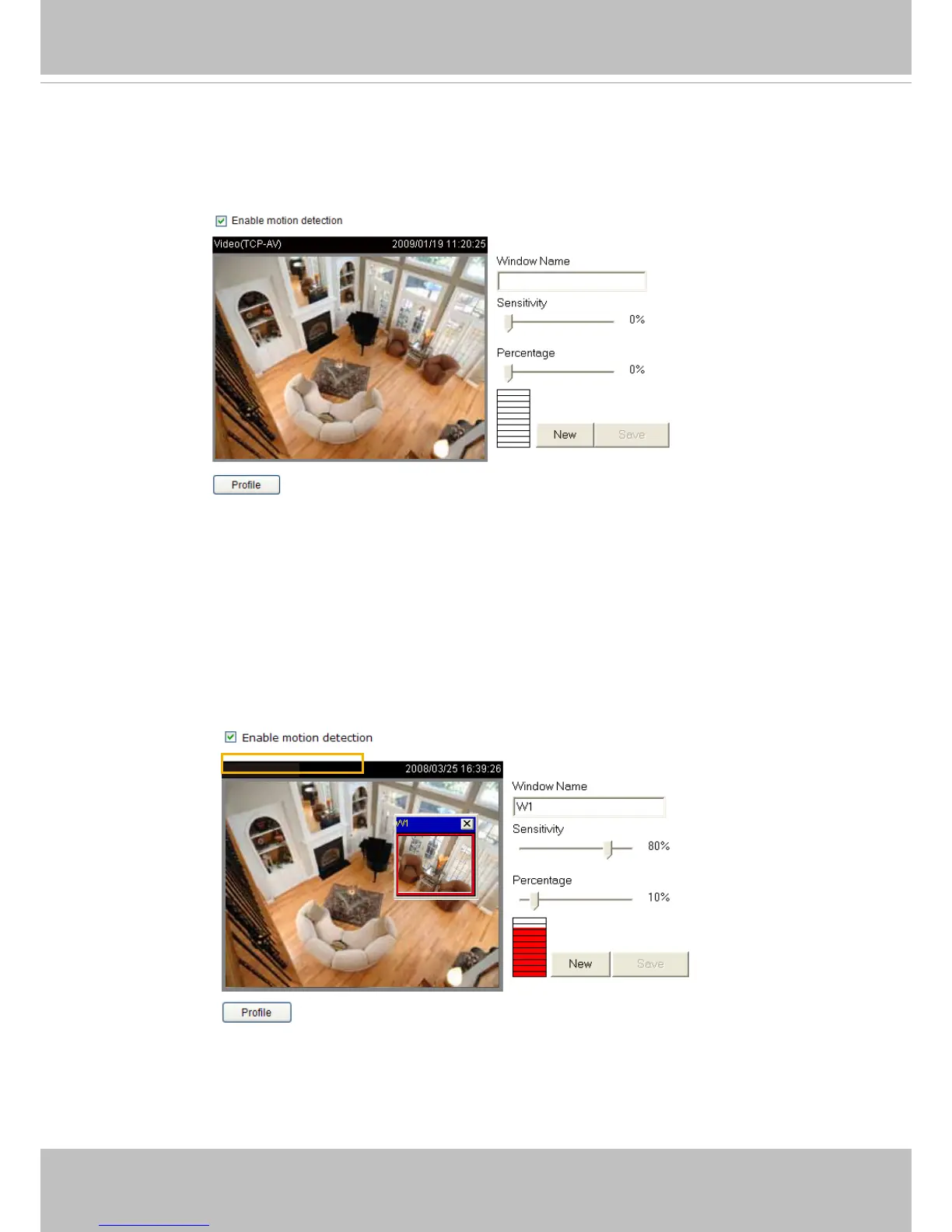 red bar rises. Meanwhile, the motion detection window will be outlined in red. Photos or videos can be