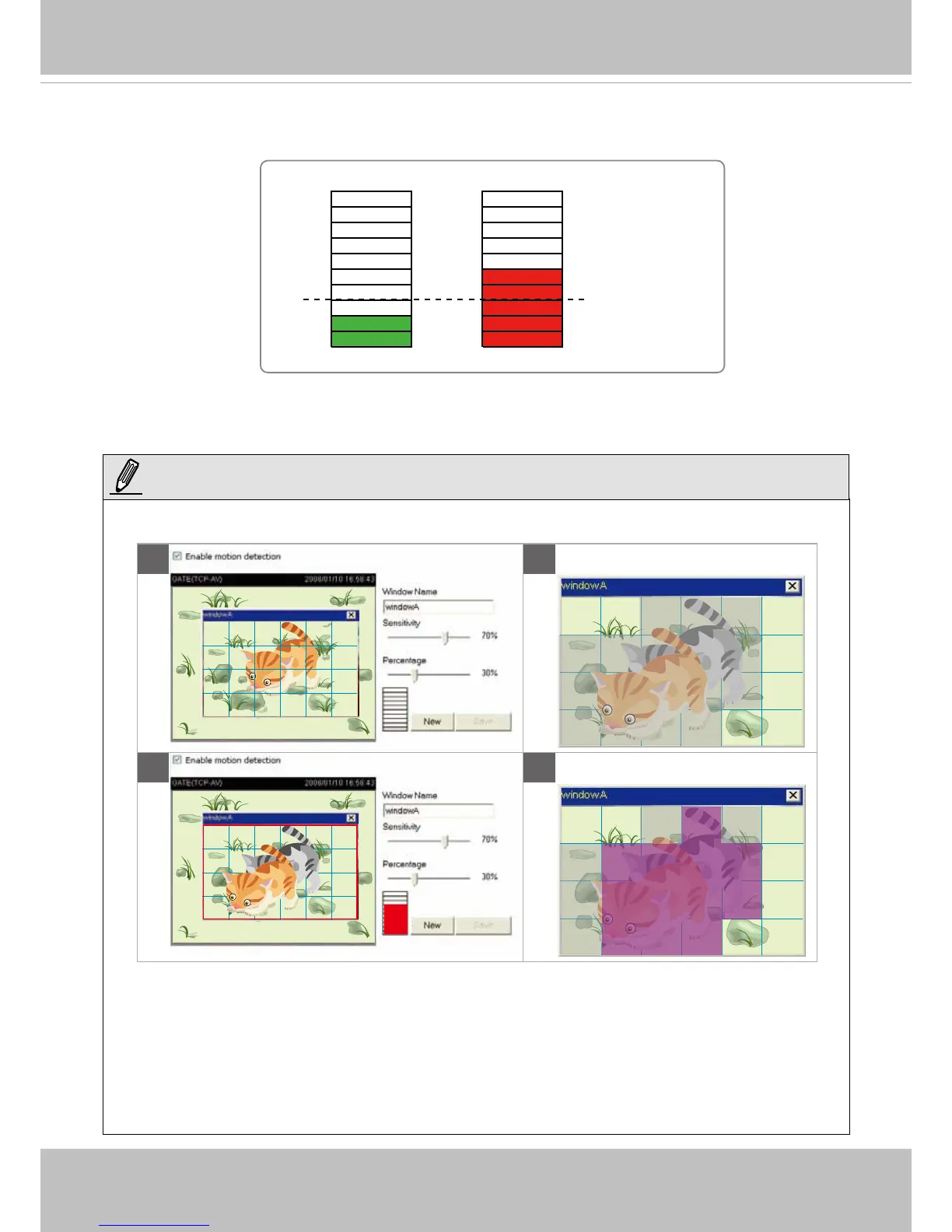 There are two motion detection parameters: Sensitivity and Percentage. In the illustration above,