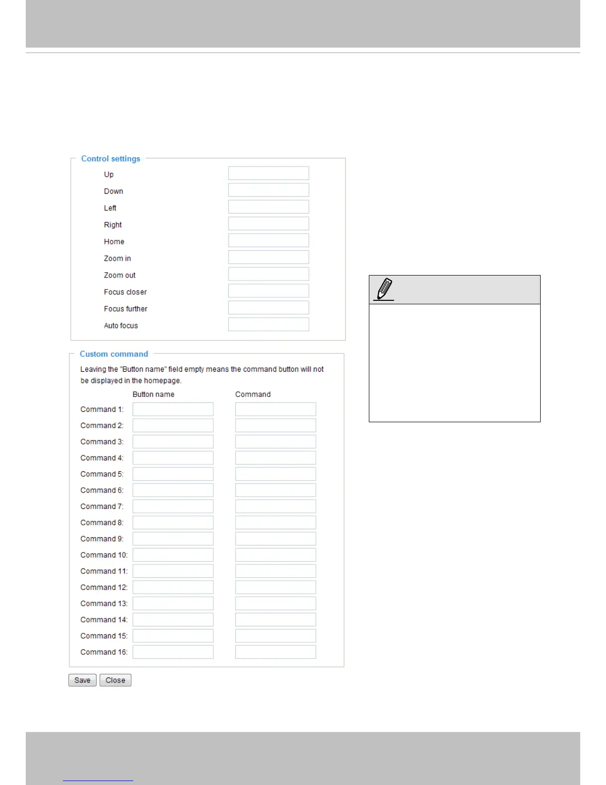 Panel on the main page will be disabled. You will need to congure command buttons to control the PTZ