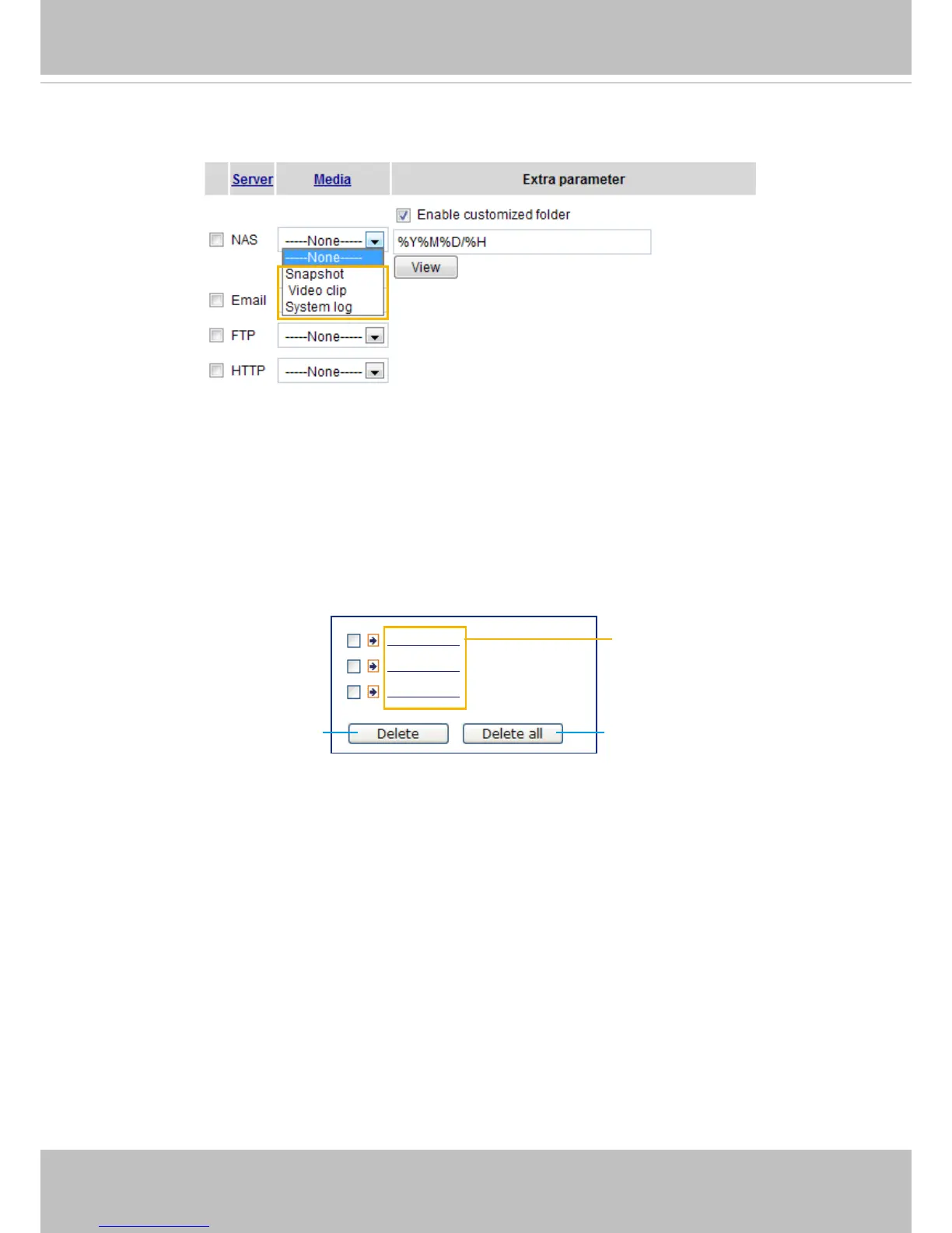 You can continue to select a server and media type for the event. Please go back to page 79 for detailed