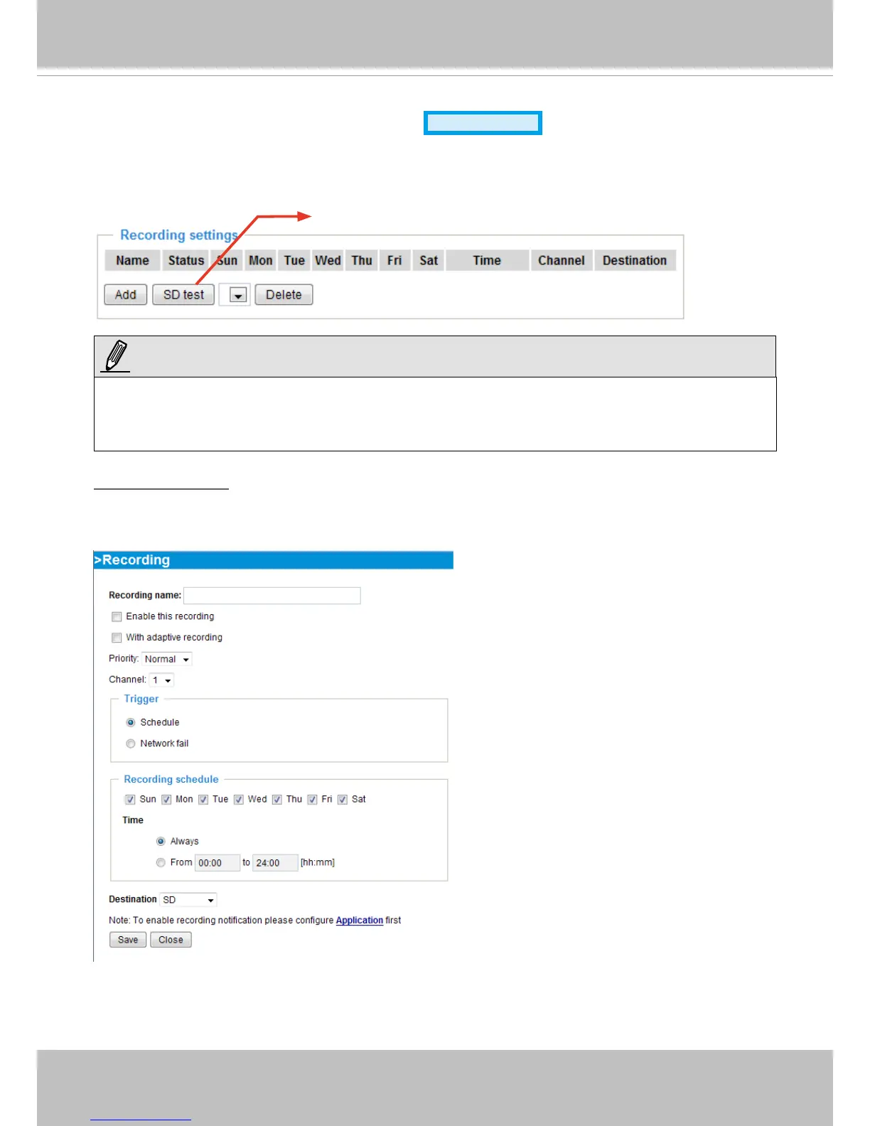 Click Add to open the recording setting window. On this page, you can dene the adaptive recording,