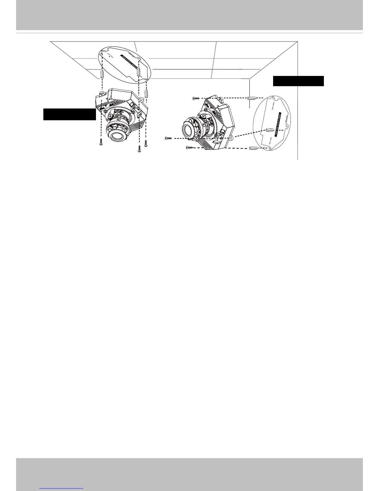 5. Align the holes on the camera with the plastic anchors on the ceilling/wall, secure the