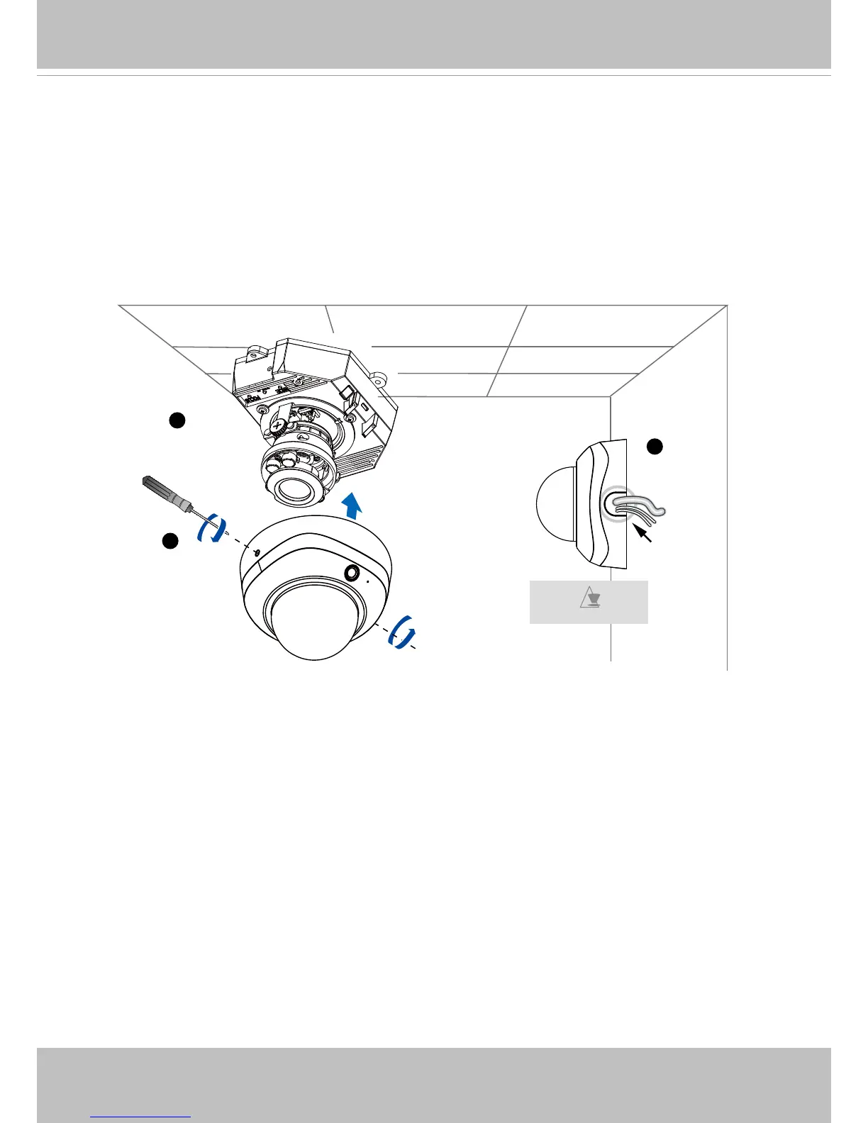 2. Attach the dome cover to the camera as the direction shown below. Tighten two screws