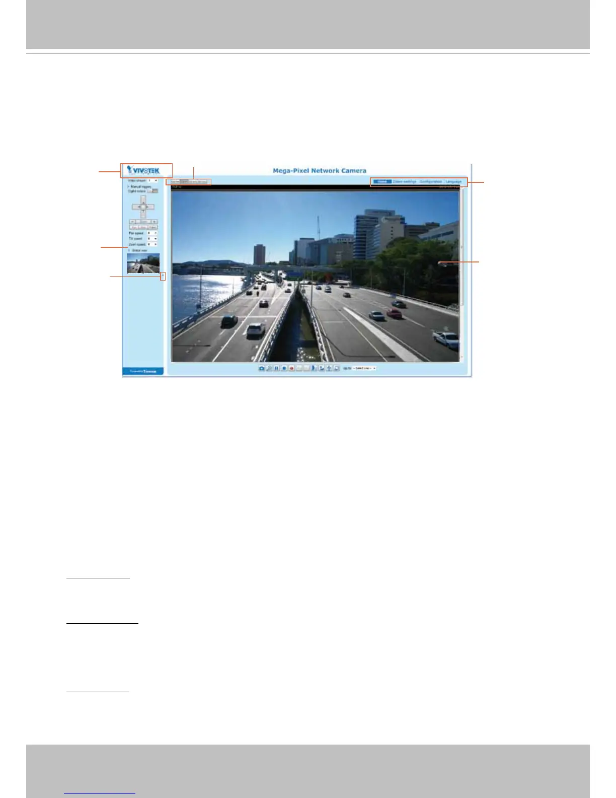 VIVOTEK INC. Logo, Host Name, Camera Control Area, Configuration Area, Menu, and Live