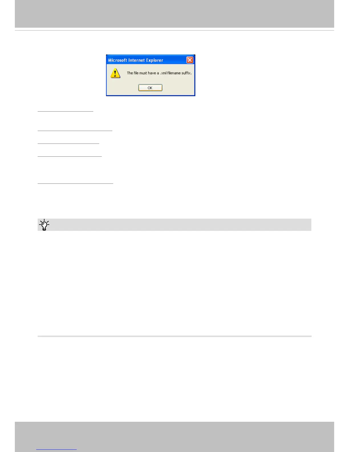 The following message is displayed when attempting to upload an incorrect le format.