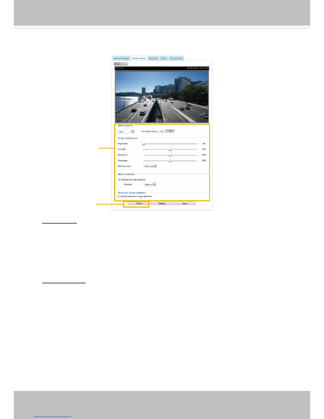 2. Click the On button to Fix current value and conrm the setting while the white balance is being