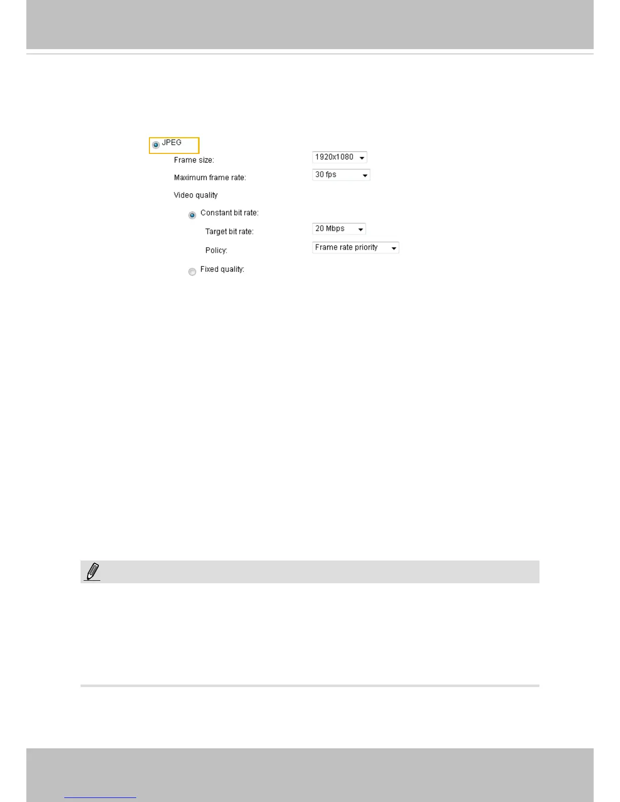bandwidth consumed for transmitting motion jpegs. The conguration method is identical to that
