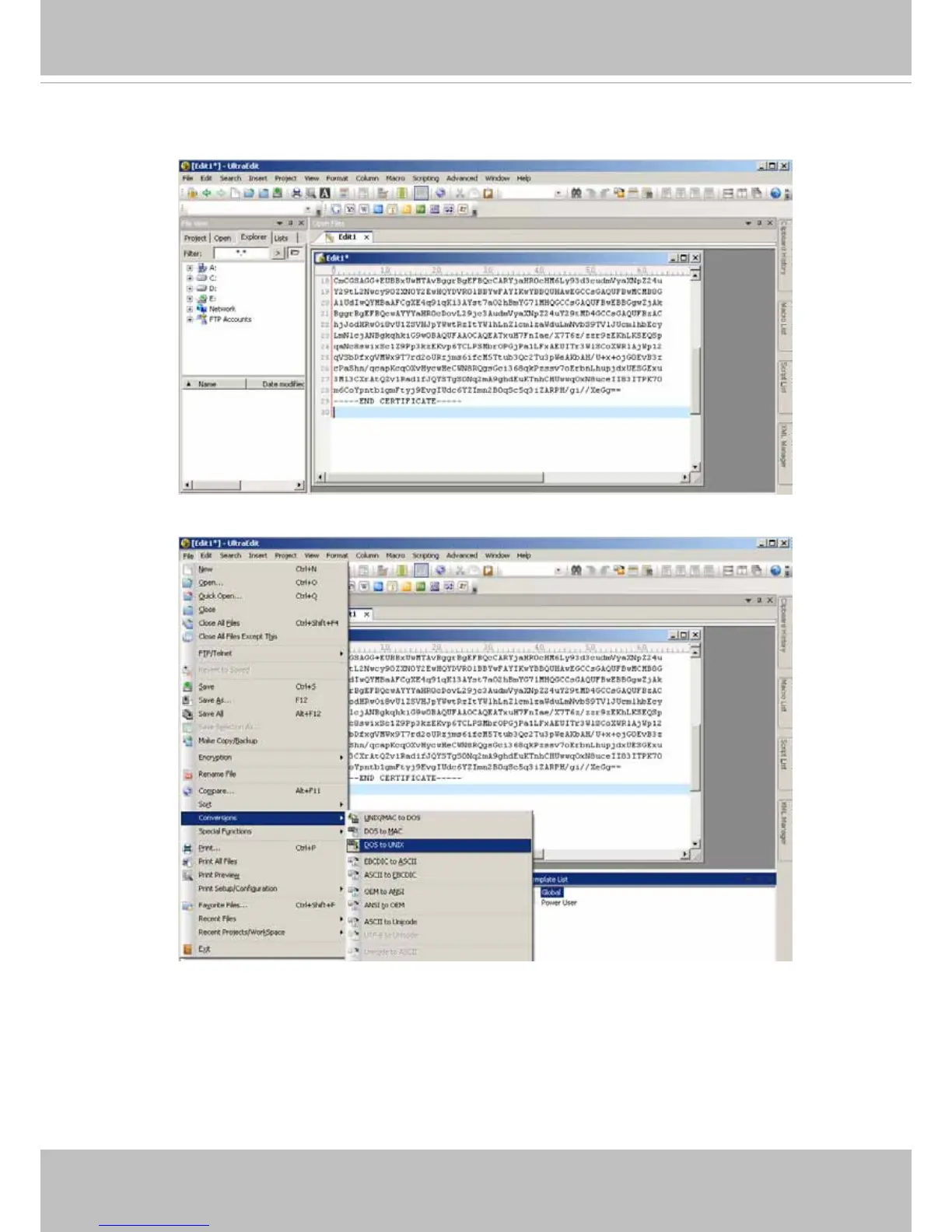 8. Convert le format from DOS to UNIX. Open File menu > Conversions > DOS to Unix.