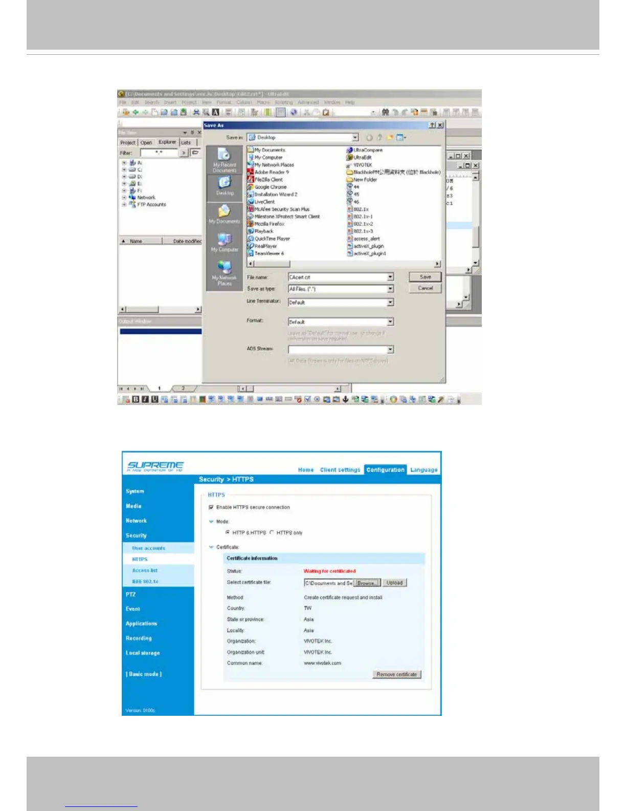 10. Return to the original rmware session, use the Browse button to locate the crt certicate le,