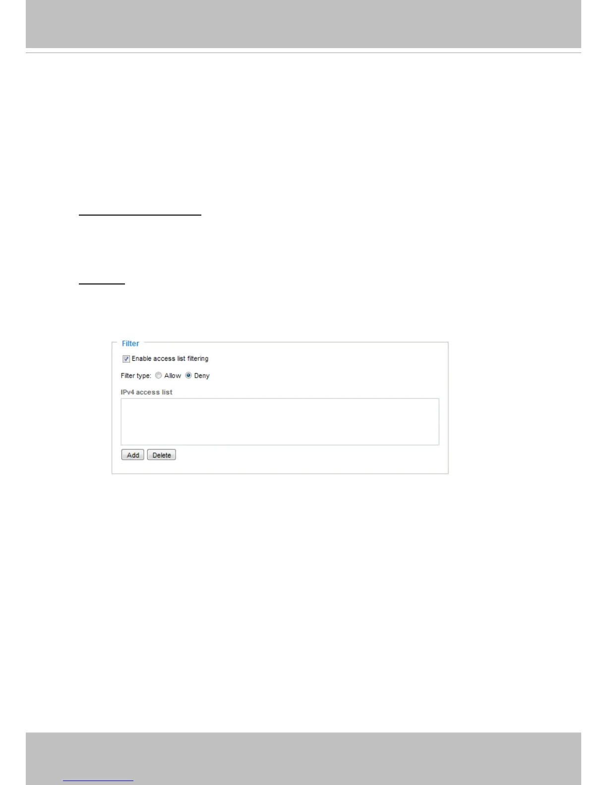 Enable access list ltering: Check this item and click Save if you want to enable the access list