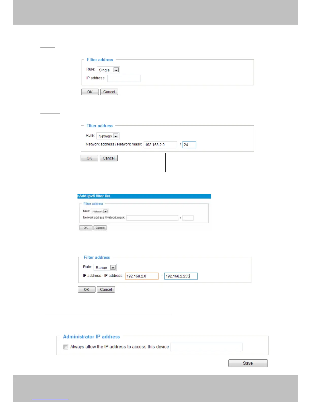 Administrator’s IP address in this eld to make sure the Administrator can always connect to the