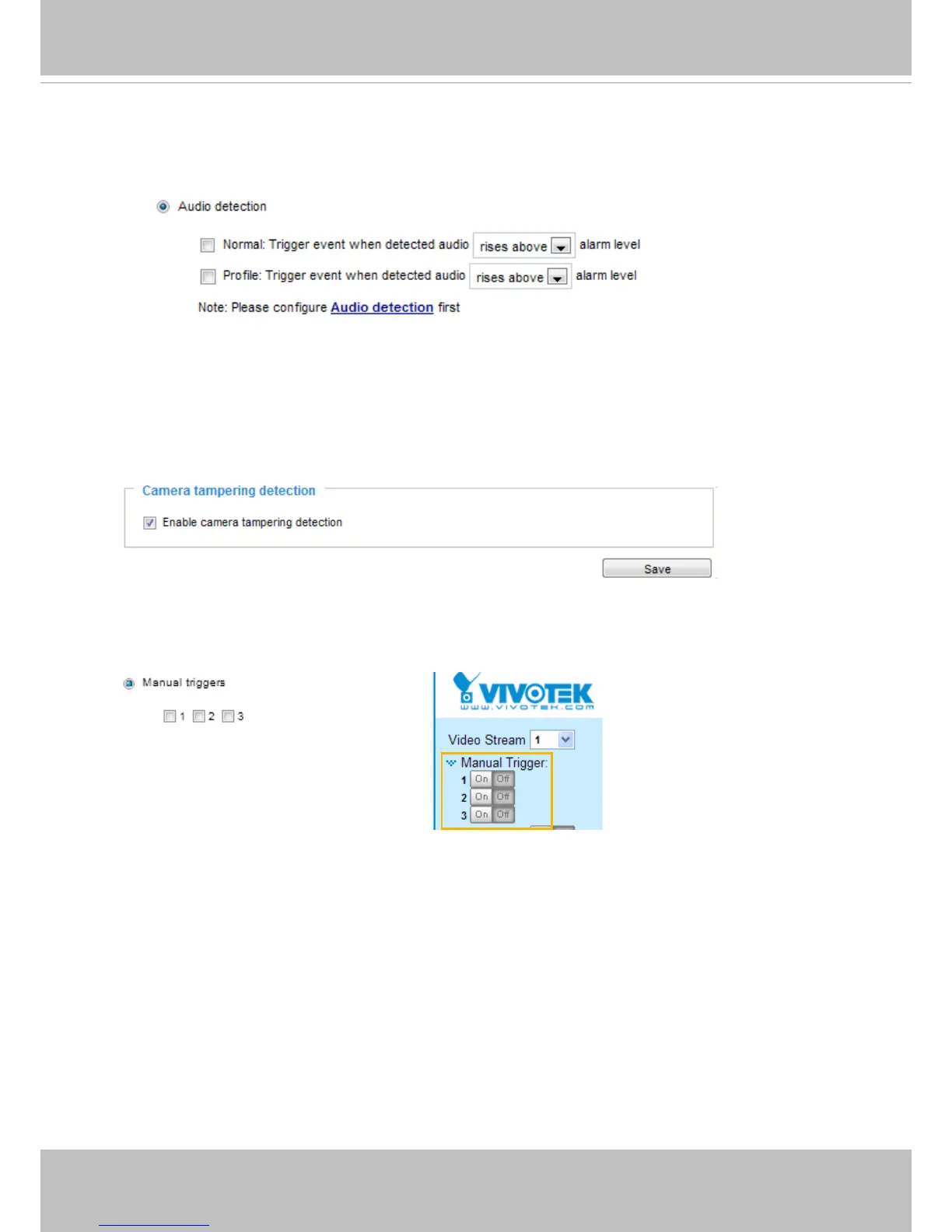 This option allows the Network Camera to trigger when the camera detects that is is being tampered