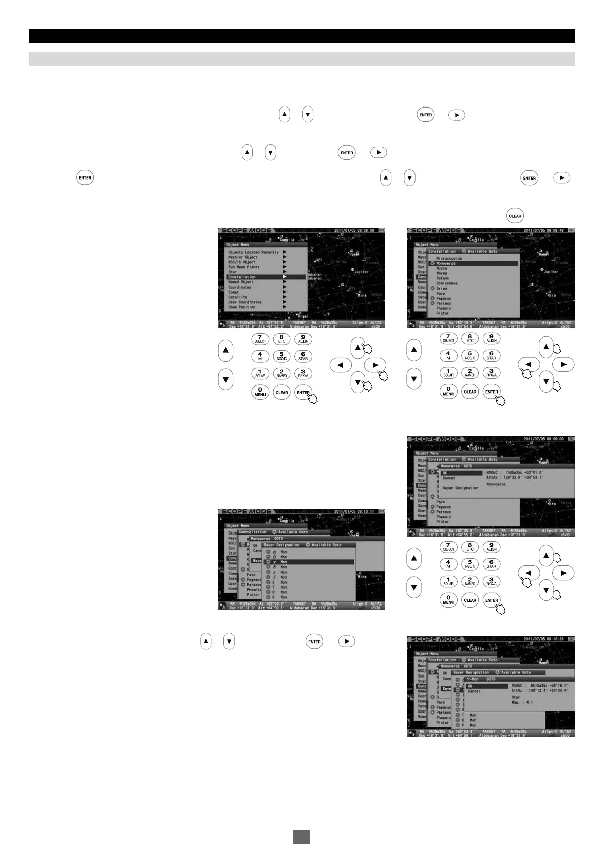 Call up “Object Menu” and choose “Constellation” with the or direction key. Press the (or )key to access a list of 88