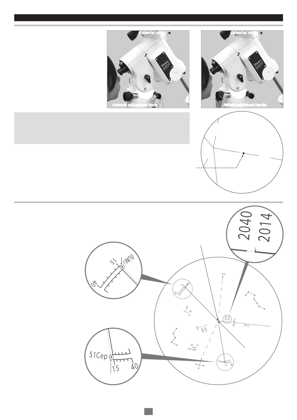 Correcting the position of Polaris with the altitude adjustment handles and azimuth