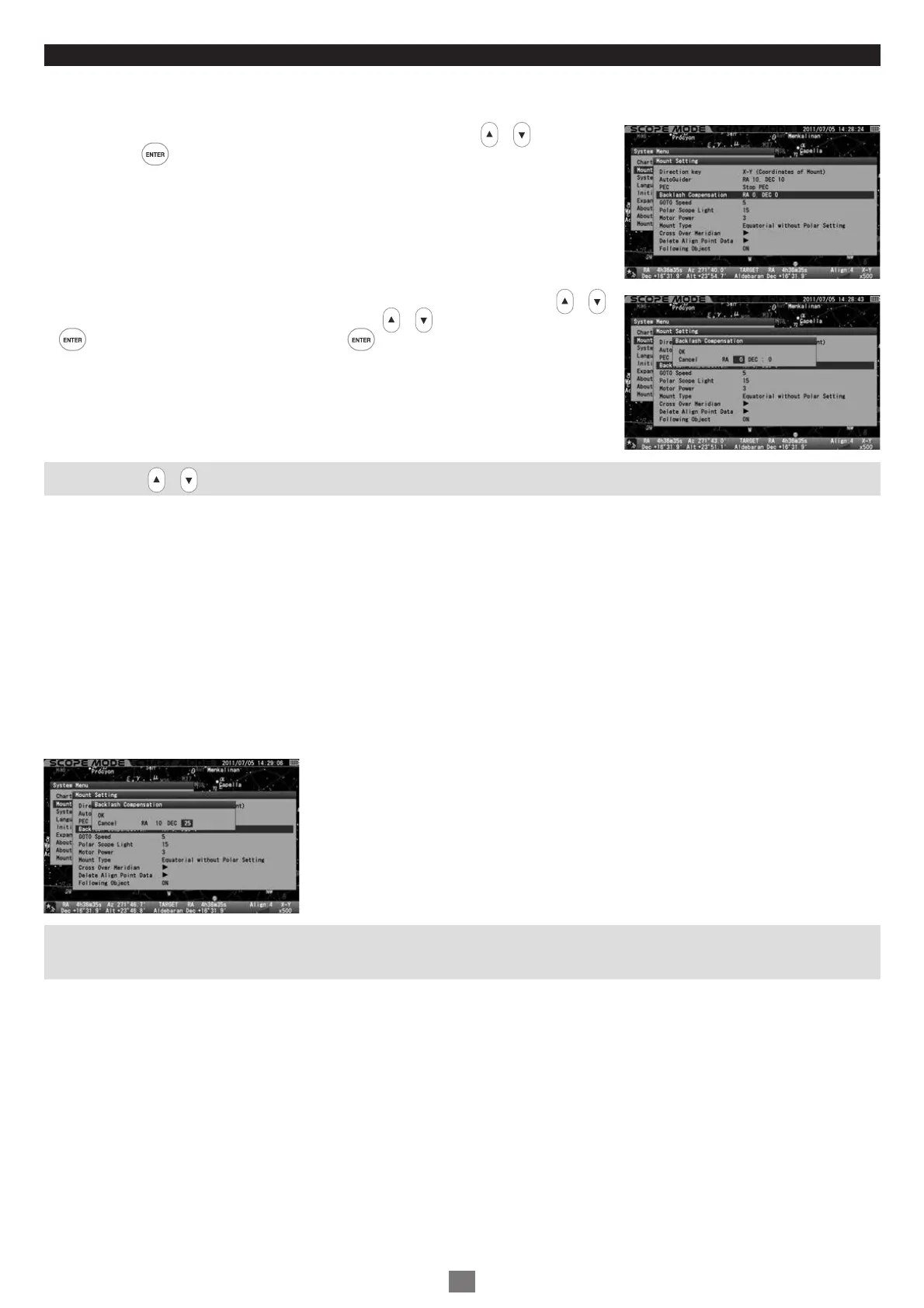 In the “Mount Setting” menu, choose “Backlash Compensation” with the or direction key