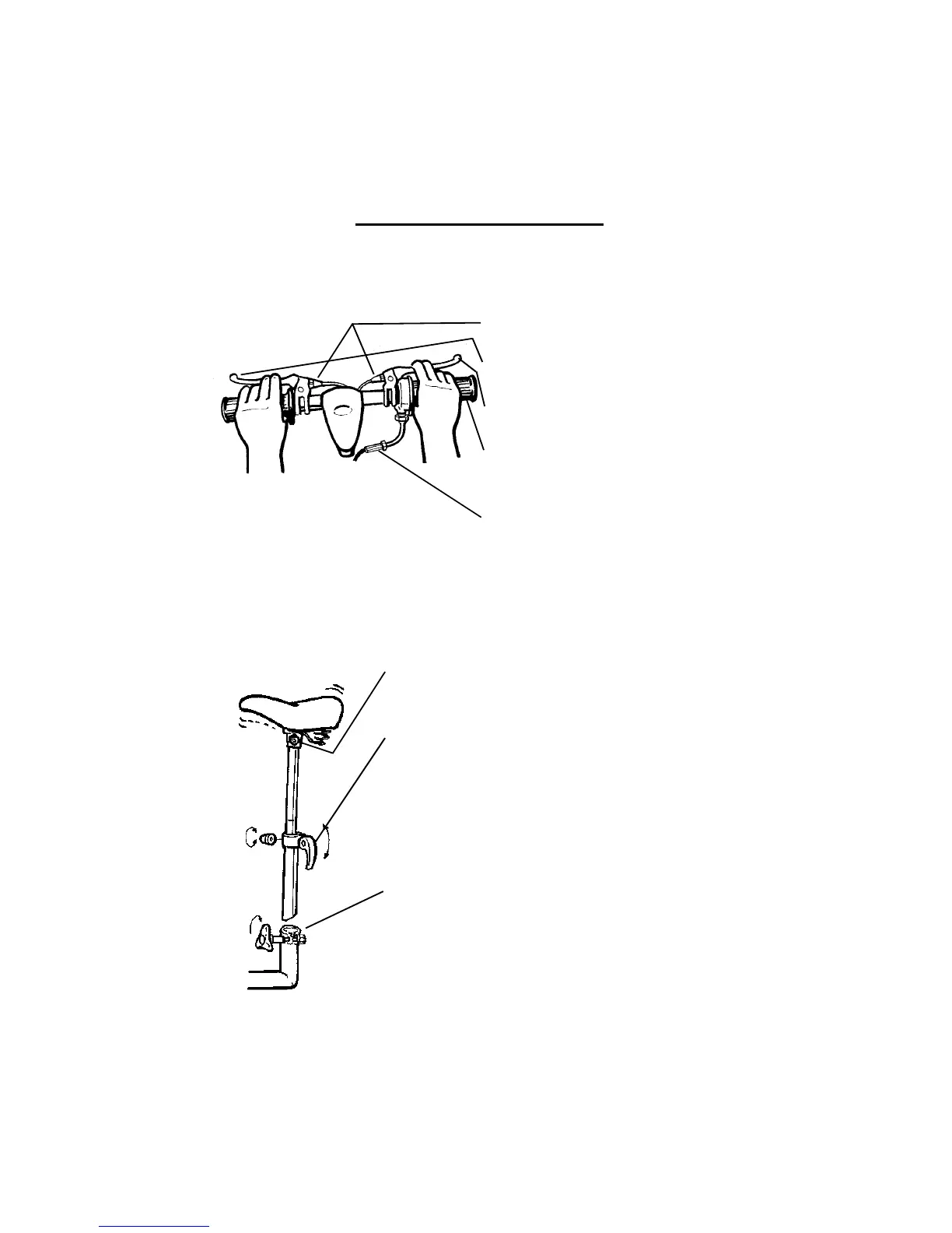 • Lower seat post adjustment knob: The