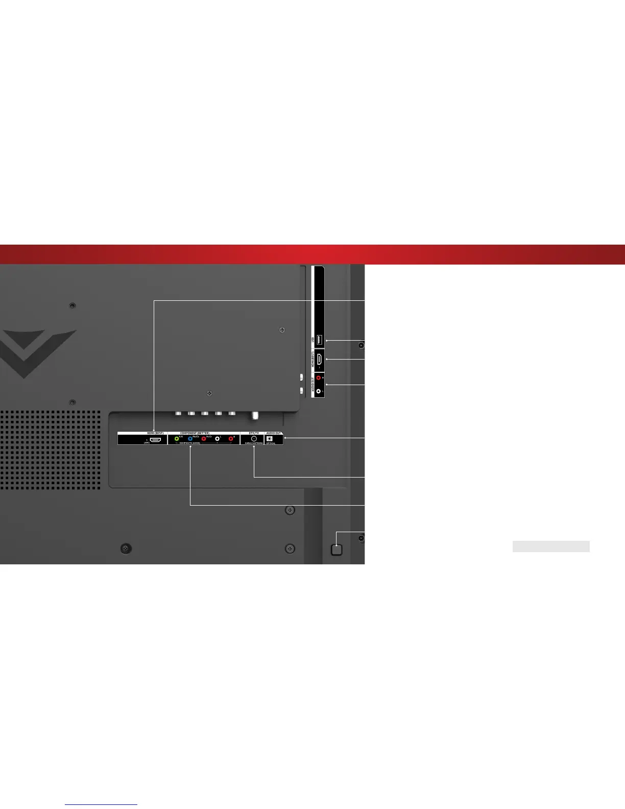Stereo Audio Out- Connect an RCA audio device, such as sound bar.