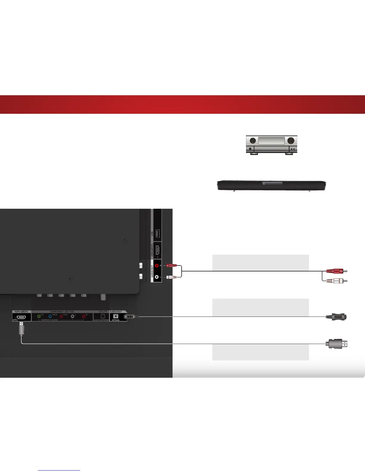 3. Connect the appropriate cable (not included) to the TV and the