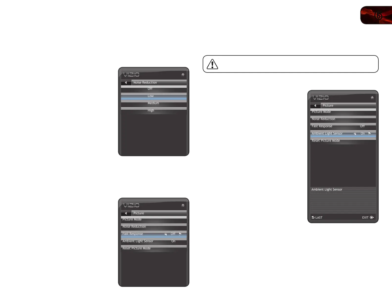 When enabled, the ambient light sensor detects the light levels in the room to