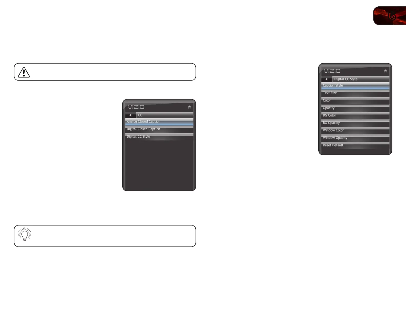 • Reset Default - Restore closed caption settings to factory defaults