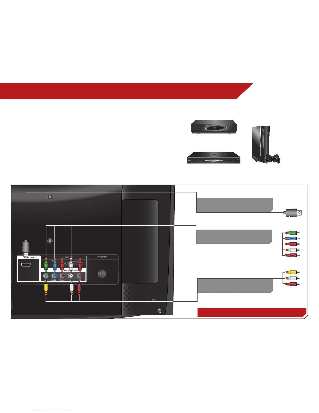 3. Connect the appropriate cable (not included) to the TV and