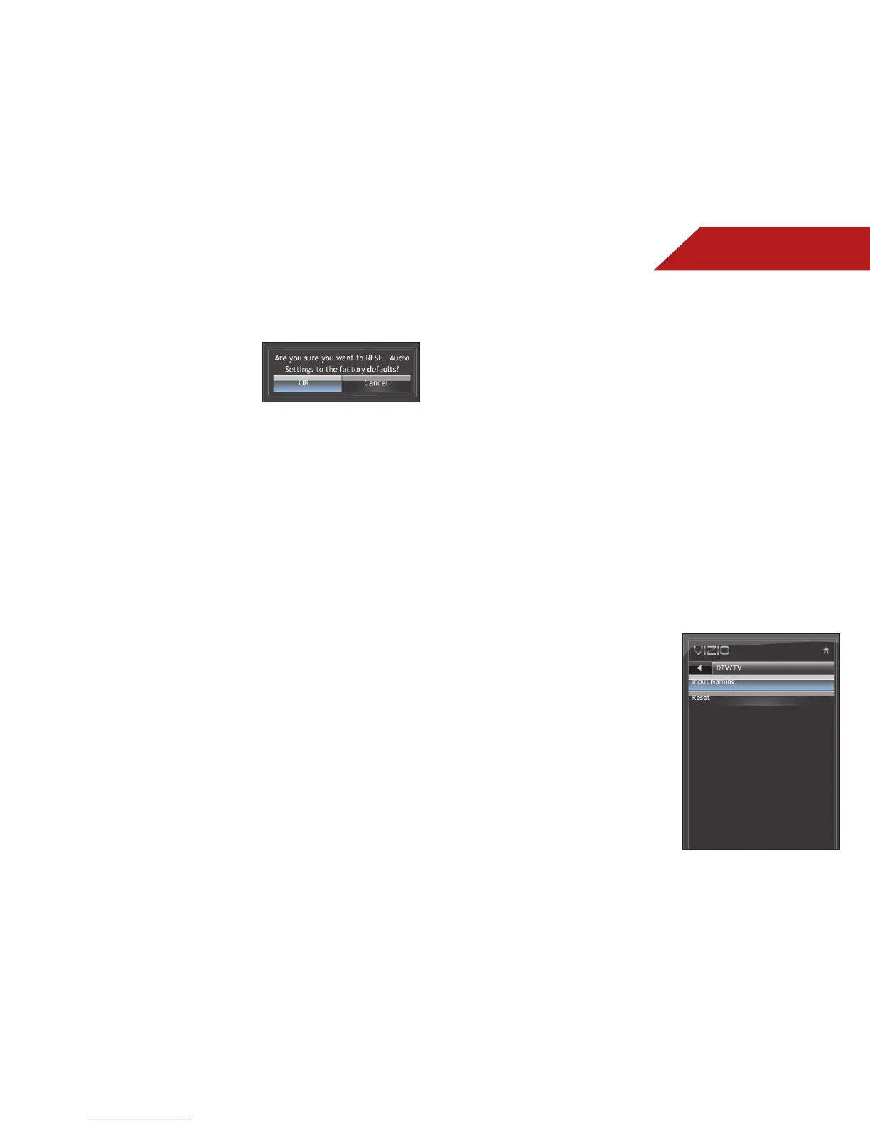 4. The TV displays “Are you sure you want to RESET Audio