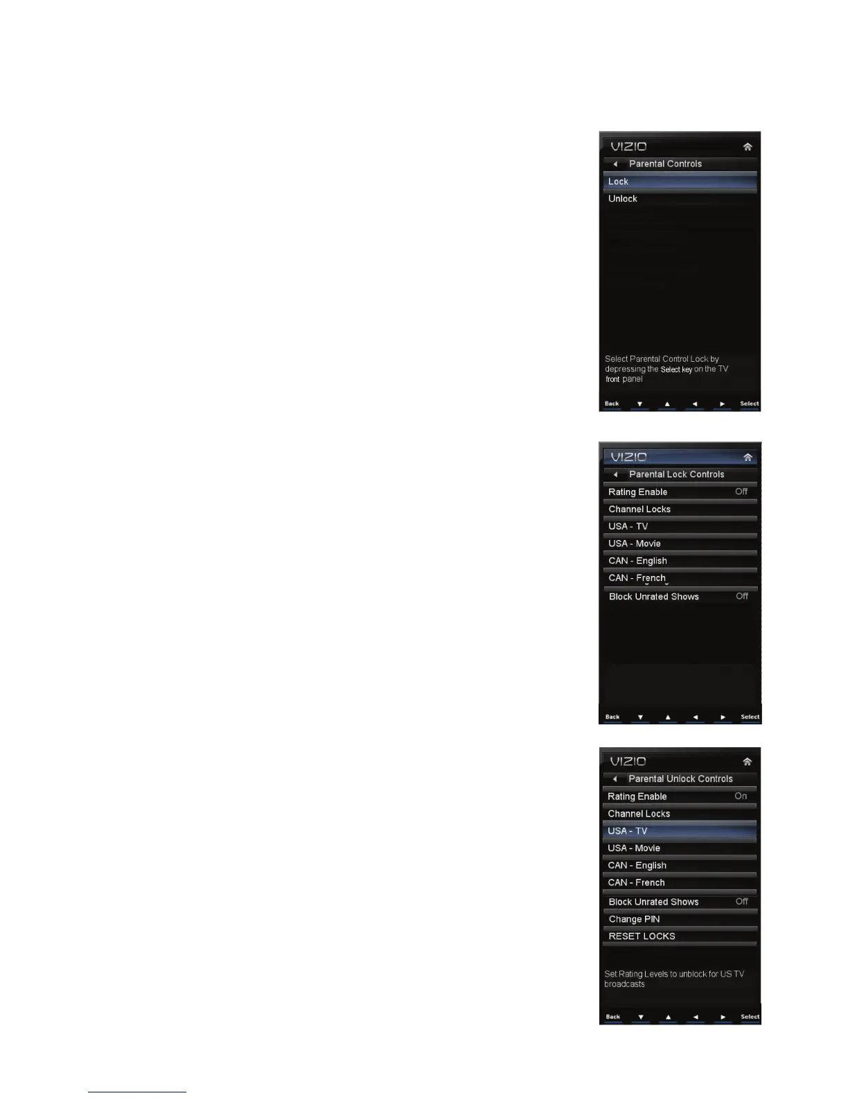 Note: The Parental Controls are divided into LOCK and UNLOCK