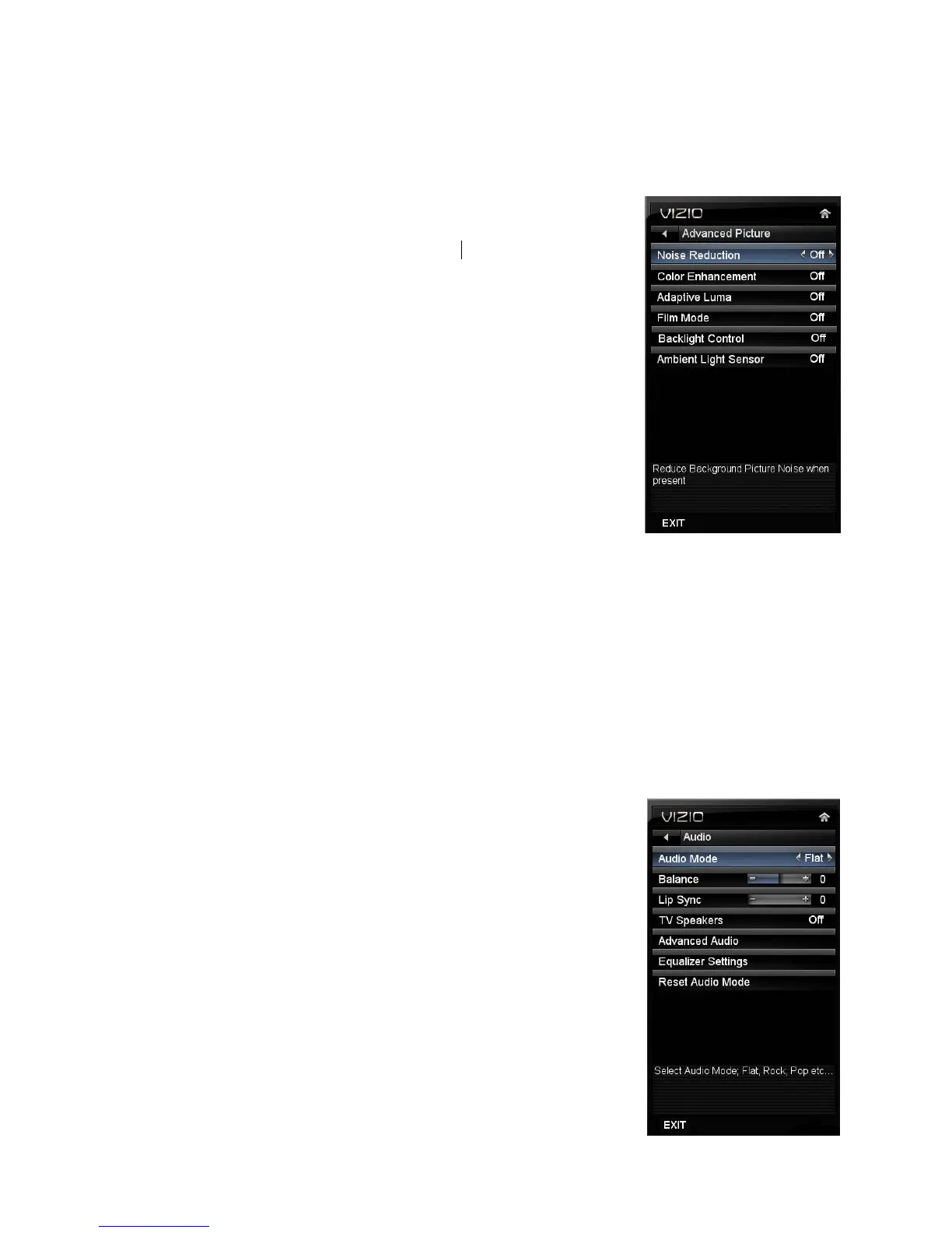 To select the options in the Advanced Picture sub-menu, press ►. A new menu will be displayed
