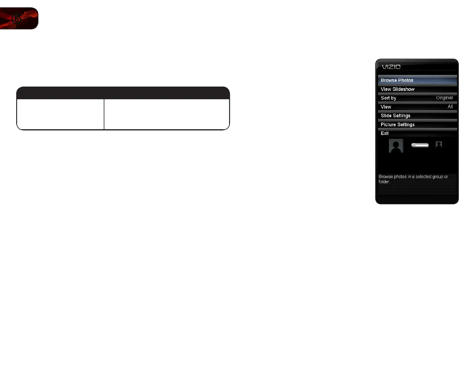 4. Use the Arrow buttons on the remote to highlight the Photo icon and press