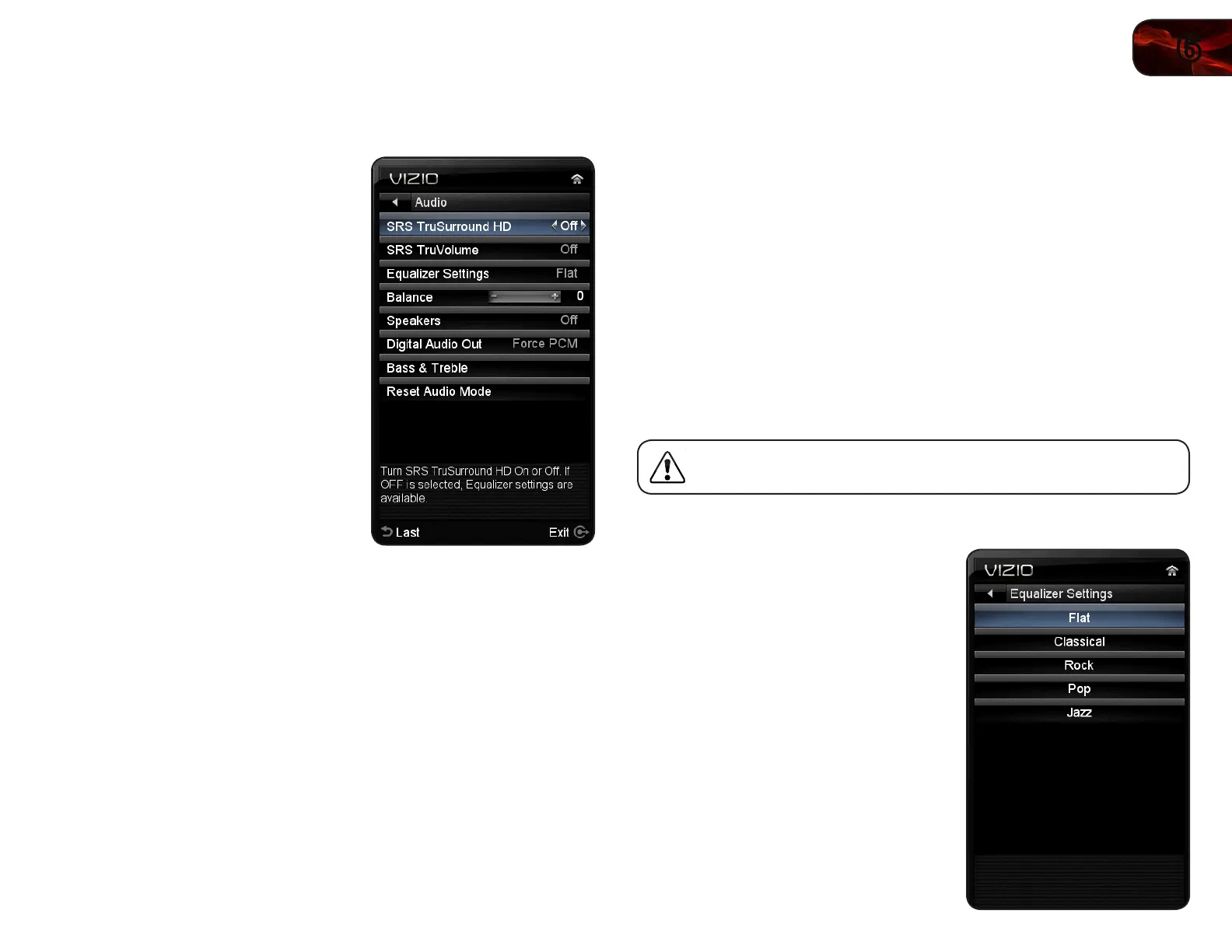 To adjust the equalizer settings menu, SRS TruSurround HD must