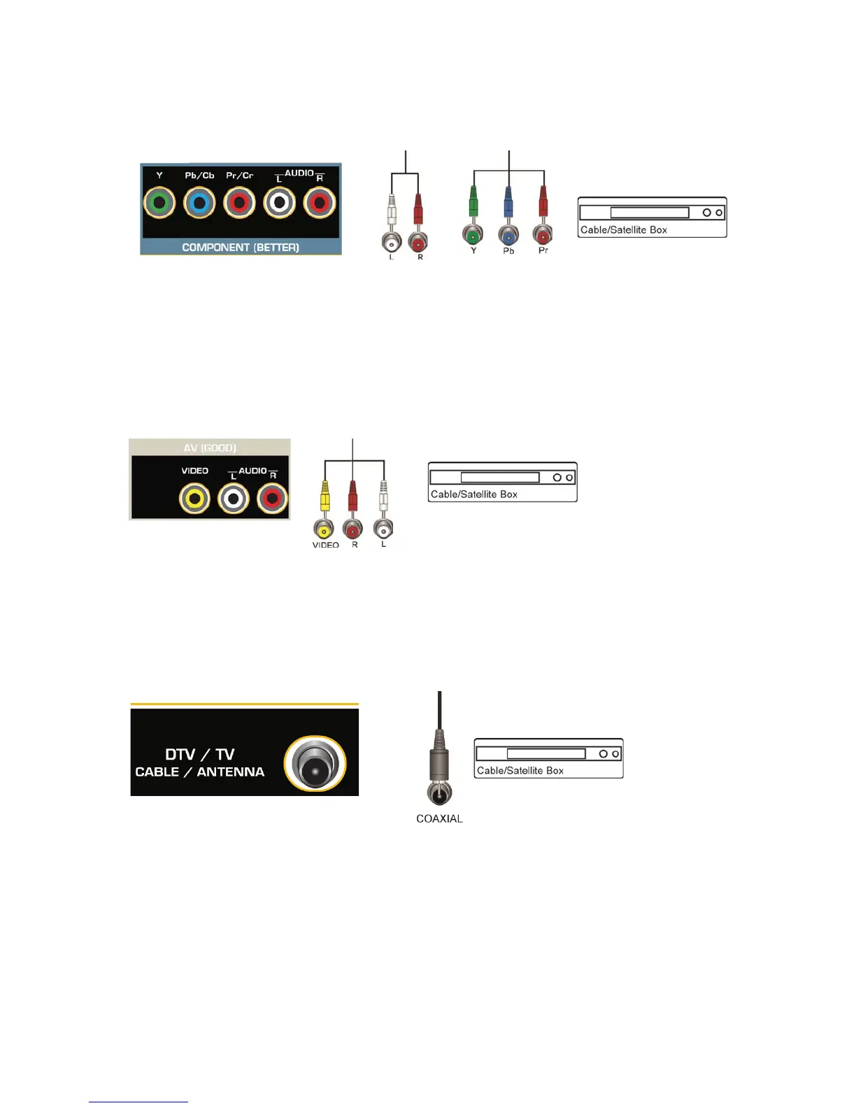 2. Connect the video cable (yellow) from your Set-Top box to the AV jack (yellow) on your HDTV.