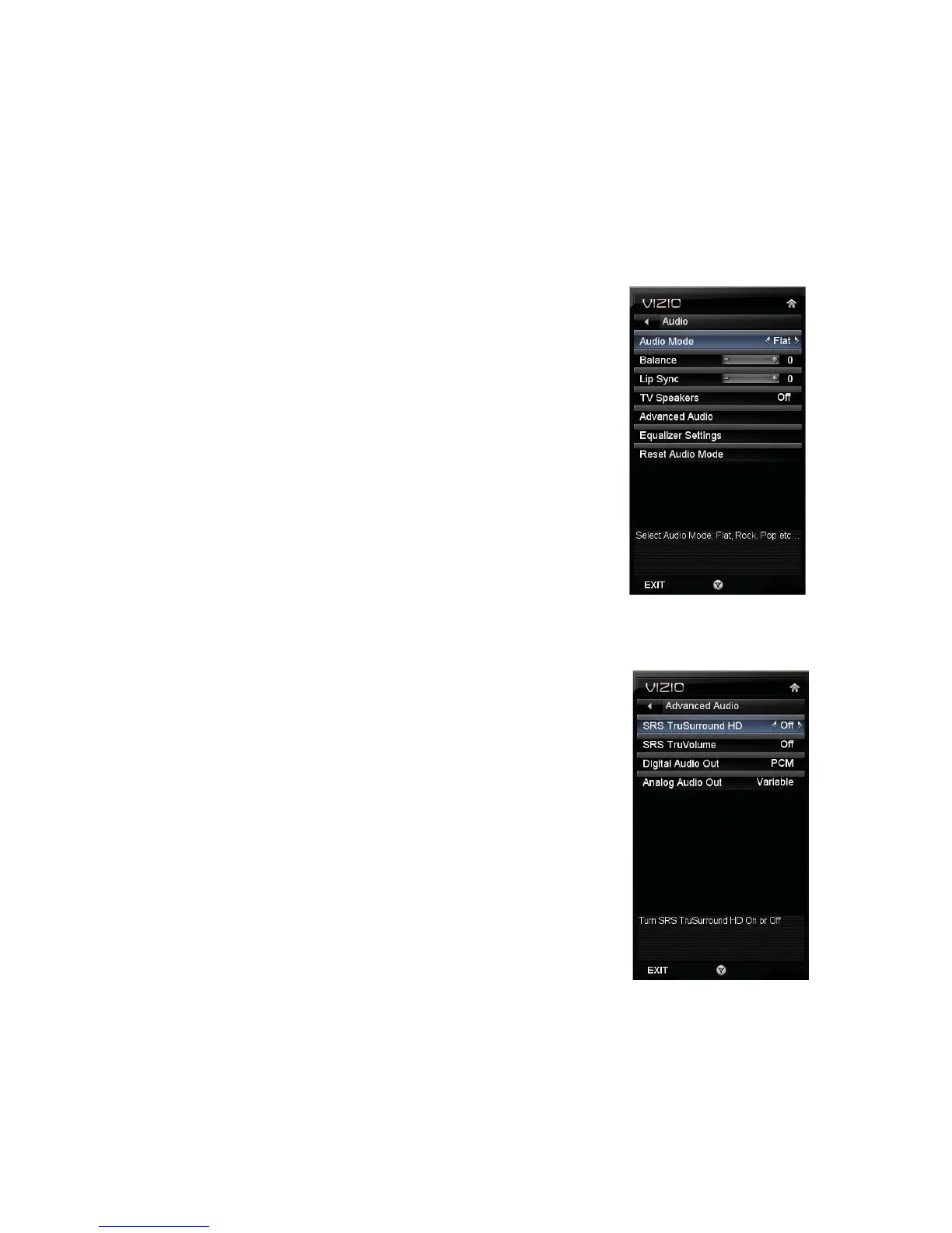 Note: When SRS TruSurround HD is ON, Equalizer adjustments