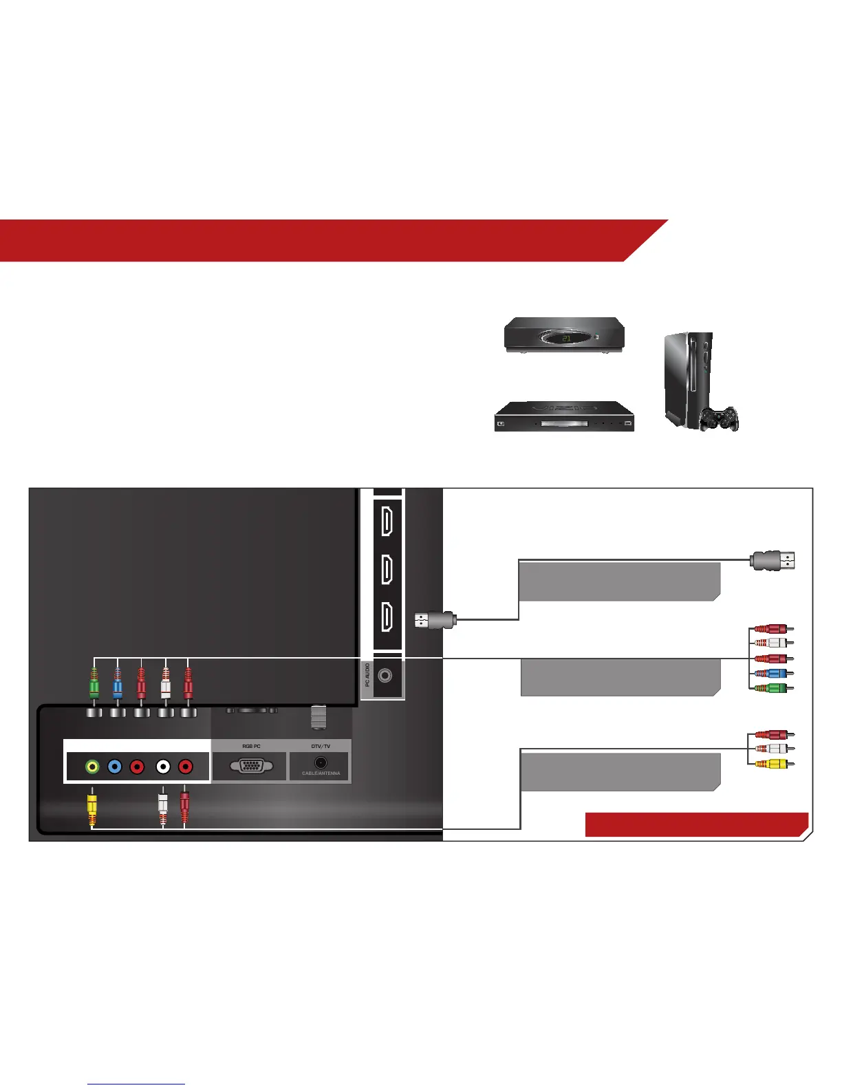 3. Connect the appropriate cable (not included) to the TV and