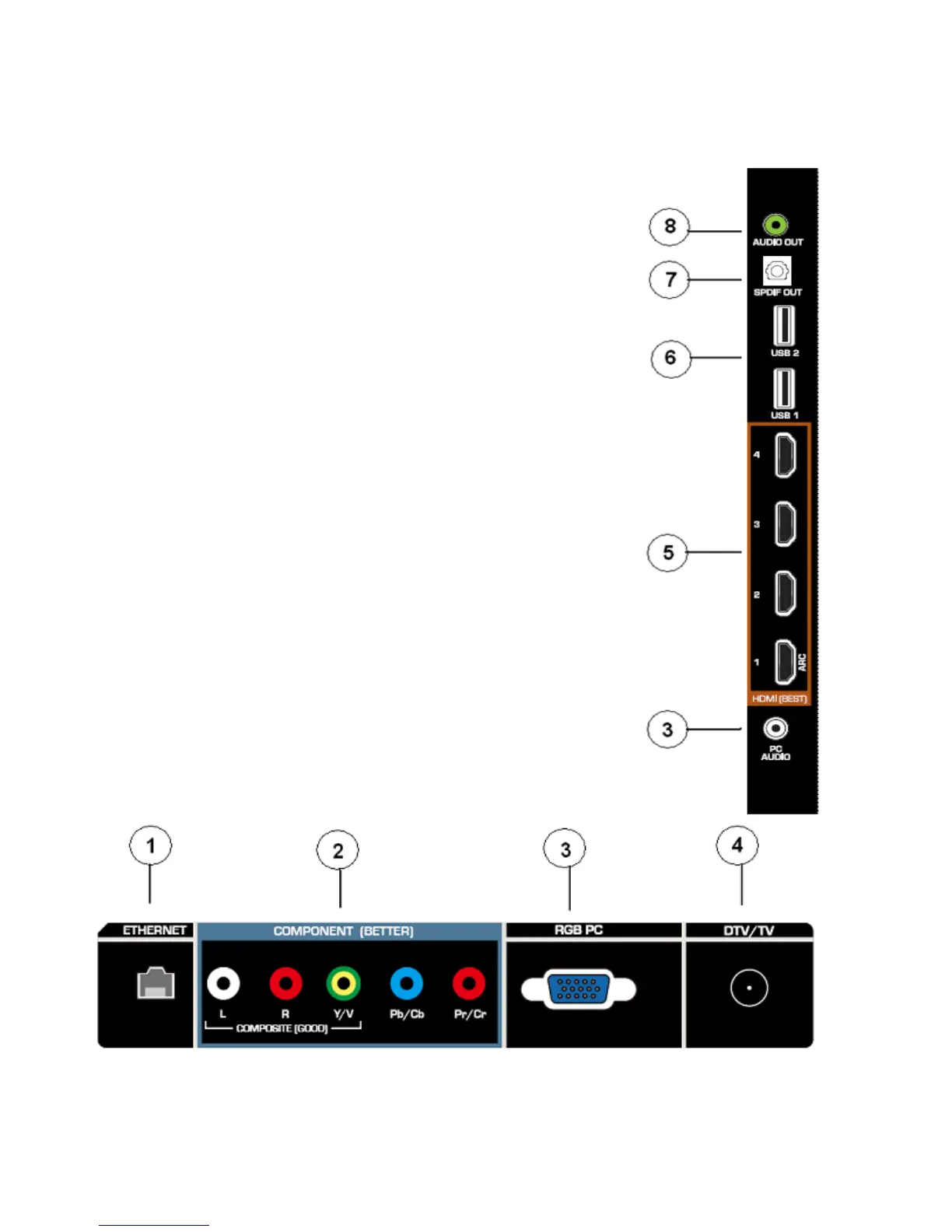 5. HDMI 1, 2, 3 and 4—Connect digital video devices such as a DVD