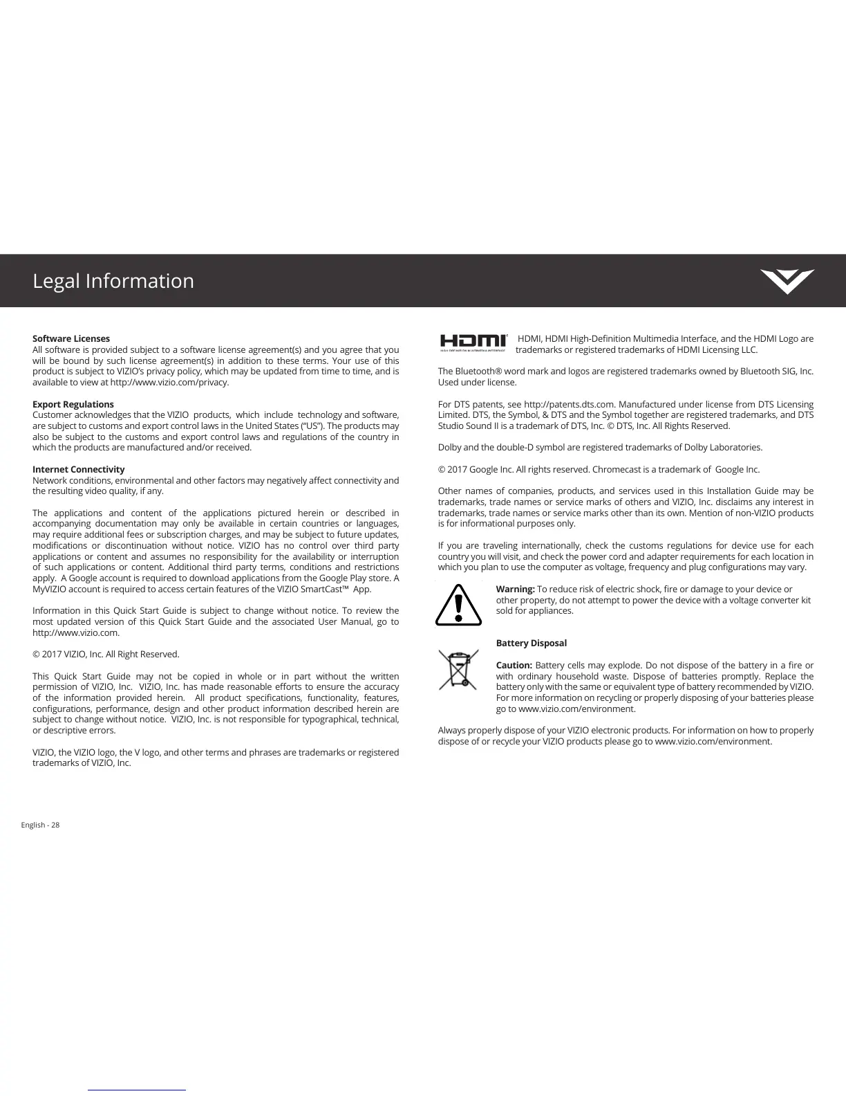 © 2017 VIZIO, Inc. All Right Reserved.